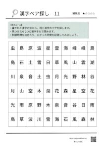 自然をテーマにした 漢字ペア探し(脳トレ)問題を作成しました。