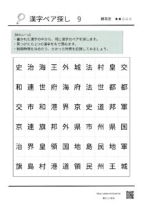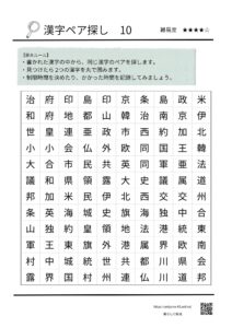 国や地域をイメージさせる漢字を使って作った、オリジナルの漢字ペア探しパズルです。